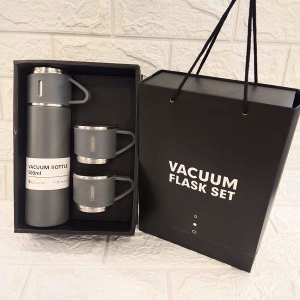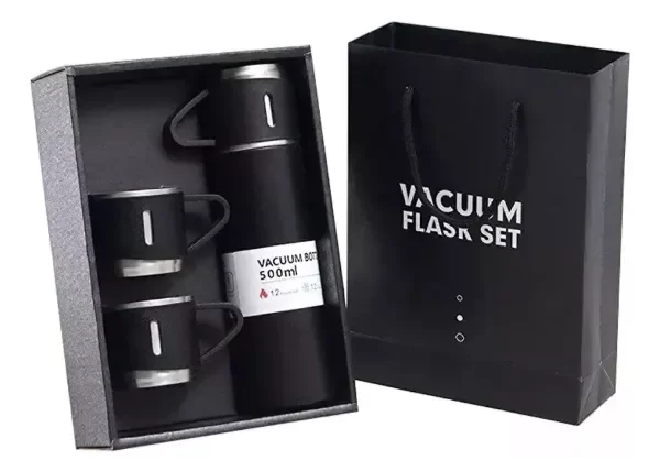 El Set Termo 500ml + 3 Tazas Acero Inox es la elección perfecta para los amantes del café o mate que buscan calidad y estilo en cada sorbo. Este conjunto incluye un termo de 500ml, ideal para mantener la temperatura de tus infusiones, y tres tazas de acero inoxidable que combinan durabilidad y elegancia.