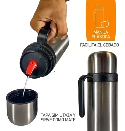 Con su diseño de media manija, este termo ofrece una experiencia de uso cómoda y práctica. Además, su tiempo de conservación de la bebida fría de hasta 12 horas y de la bebida caliente de hasta 1 día, te asegura que podrás disfrutar de tus bebidas siempre en la temperatura ideal.